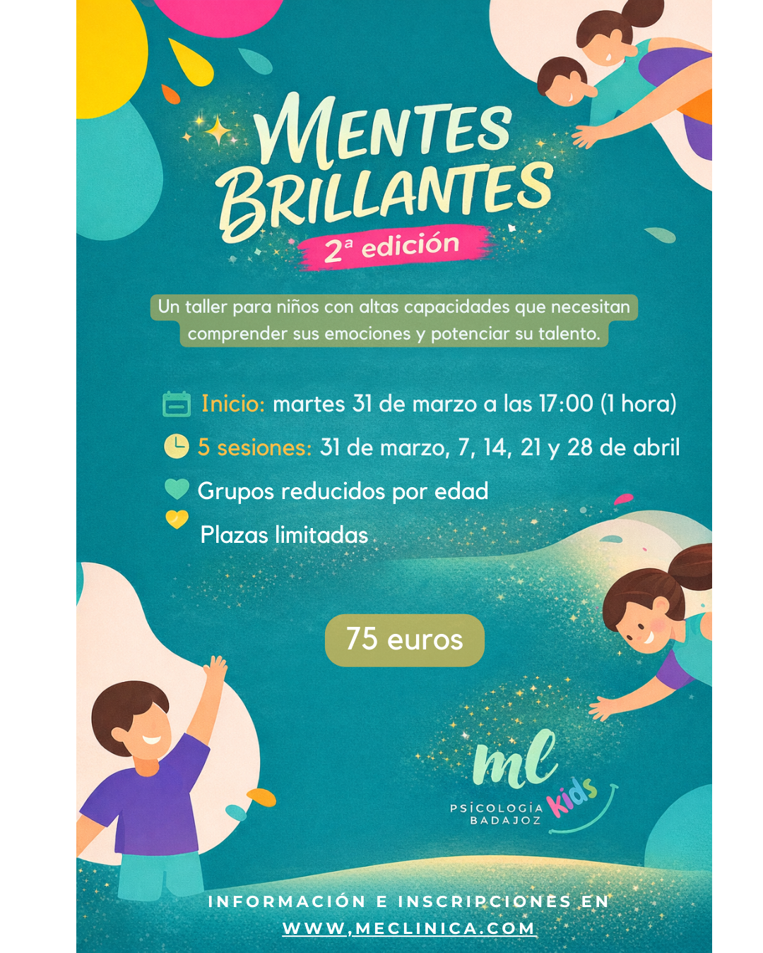 Un taller diseñado para niños y niñas con altas capacidades que necesitan comprender su intensidad emocional, fortalecer su autoestima y desarrollar su talento de forma equilibrada, en un entorno seguro y adaptado a sus necesidades, todo ello de la mano de Ángela, nuestra psicóloga y neuropsicóloga.